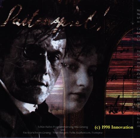Vater" heißt das vor kurzem erschienene Debütalbum des Duos JANUS, eine deutsche Formation, die mit nicht gerade wenigen Gastmusikern zusammenarbeitet. Kern von JANUS sind T. Hahn und Rig und schon das Artwork der CD und des Booklets läßt einiges von seinem Inhalt erahnen. (und nebenbei die (verräterischen) Herzen von Poe- und HPL-Fans höherschlagen, zumindest ging es mir so) Sieben Lieder bei insgesamt 50 Minuten Laufzeit bescheren dem geneigten Hörer verstörende, sarkastische, kitschig-ironische (Lolita...) und immer düstere Texte, die ich am ehesten der Romantik eines Edgar Allen Poe zuordnen mag, oder der Bizarrerie Kafkas (nein, ich benutze jetzt nicht das Wort kafkaesk!). Saitenspiel" bezieht sich gar auf das Leben (und Sterben) von Gustav Mahler, dem öterreichischen Komponisten der Kindertotenlieder. Der Sound ist teilweise (beun-)ruhig(-end) und düster, mit unheilvoller Stimme vorgetragen, dann folgen wieder längere Passagen mit eindringlichem Gesang, hämmerndem Instrumentengebrauch (darunter seltsamste Geräte wie Djembe, Tarabuka, Oud u. ä.) und dabei durchaus tanzbaren Rhythmen.