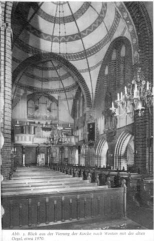 durch die Kirche. Er zeigt z.B. einige alte Altäre, die Orgel,
