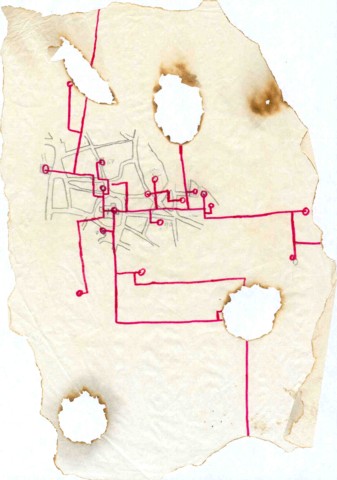 Auf diesem Pergament ist ein Stadtplan von Meldorf zu sehen, in