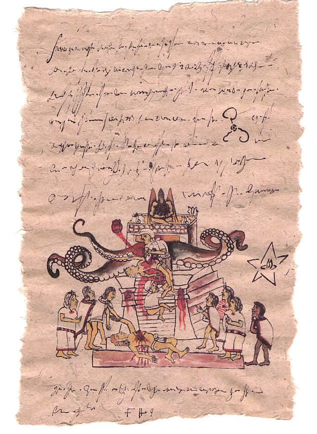 die Zeichnung aztekisch ist, die Schrift jedoch von bislang ungeklärter
